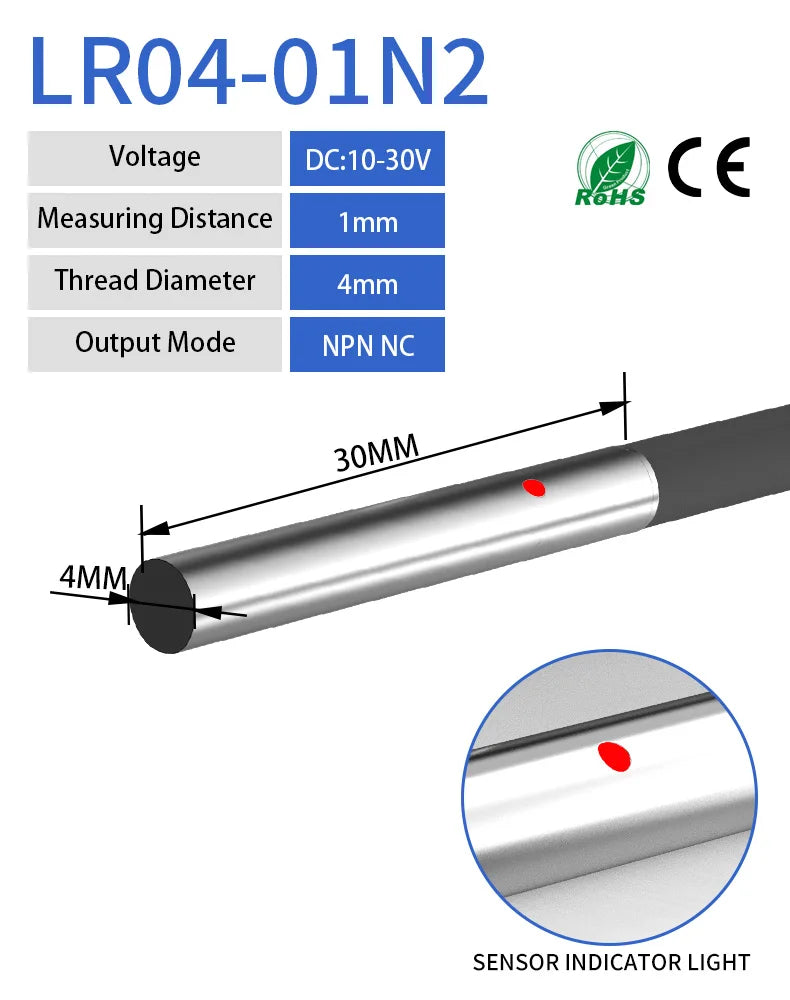 GTRIC M4 Series Small Inductive Proximity Switch NPN PNP NO/NC DC 10-30V Miniature Metal Detection Sensor with 2M Cable